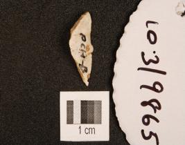 | Description / विवरण | A chert lunate with pointed on end, use wear marks on cutting edge and triangular cross-section. |
