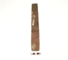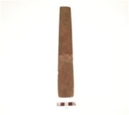 | Description / विवरण | A copper chisel, rectangular shaped, flat surface, bevelled edge and narrow at one end. |