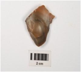 | Description / विवरण | A side scraper prepared on chert blade with single ridge and ripple marks on dorsal, prepared platform, partly chipped off bulb on ventral and use wear marks on cutting edges. |