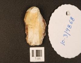 | Description / विवरण | A core made on chert, flake scars and blade scars on the surface and prepared platform on proximal end. |