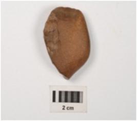 | Description / विवरण | A side scraper made of chert with prepared platform, cortex on dorsal and ventral, flake scars on left cutting edge. |