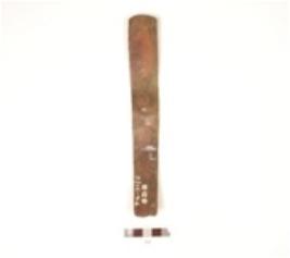 | Description / विवरण | A copper chisel, rectangular shaped with flat surface, bevelled edge and narrow at one end. |