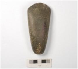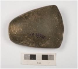 | Description / विवरण | A polished stone celt made of basalt with broad, flat and sharp working edge. spherical thick and heavy butt end. |