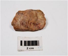 | Description / विवरण | Fragment of chert core, blade scars on surface. |
