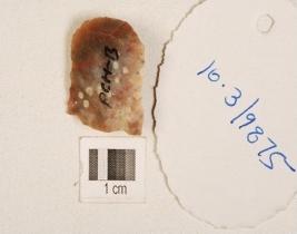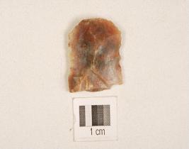 | Description / विवरण | A chert blade, use-wear marks on working edge, ridge on dorsal side and bulb absent. |