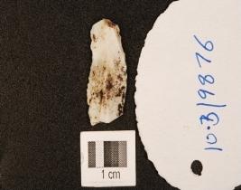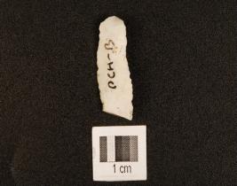 | Description / विवरण | A chert blade, one ridge on the dorsal side, prepared platform and diffused bulb and use wear marks on working edge. |
