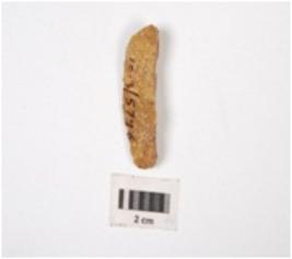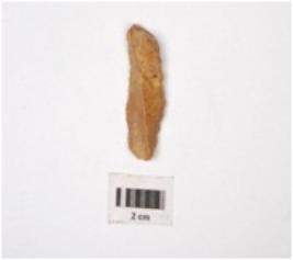 | Description / विवरण | Chert blade, ridge on dorsal edges, use-wear marks and diffused bulb on ventral side. |