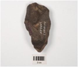 | Description / विवरण | A side scraper prepared on end struck flake with flake scars on dorsal and ventral blunt edge and cortex on distal end. |