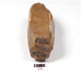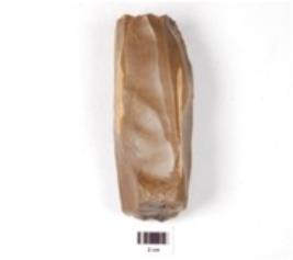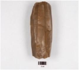 | Description / विवरण | A core made on chert, blade scars on surface, uneven edges and section. |