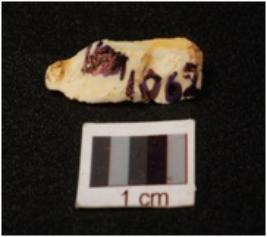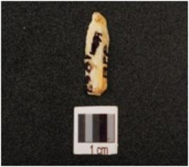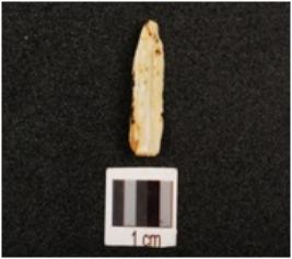 | Description / विवरण | Fragment of blade made on milky quartz with sharp working edges on both side, use ware marks along the working edge, ridge visible on dorsal surface, pointed at distal end, bulb absent. |
