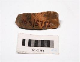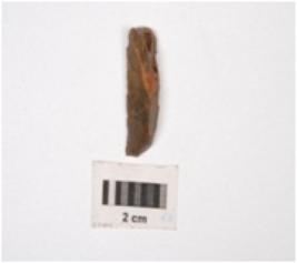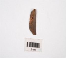 | Description / विवरण | A chert blade, mid-ridge on dorsal use-wear marks on edges and triangular section. |