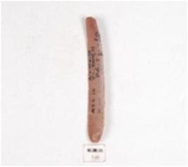 | Description / विवरण | A parallel sided blade, made on chert, mid-ridge on dorsal surface, use wear edges and diffused bulb on ventral surface. |