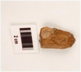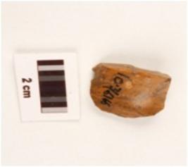 | Description / विवरण | Stone flake with a prominent ridge on a dorsal side, diffused bulb, prepared platform. |