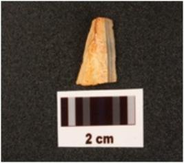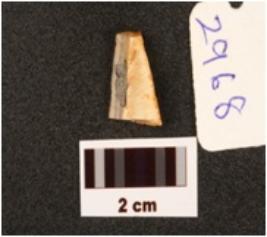 | Description / विवरण | Fragment of blade sharp cutting edges, flake scars on dorsal surface, triangular in section, broken distal end, bulb on ventral surface. |