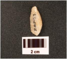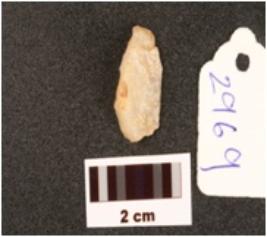 | Description / विवरण | A quartz backed blade with irregular retouches on one side and use wear marks on other side. |