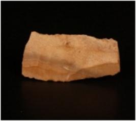 | Description / विवरण | A chert blade, double ridge on dorsal side, use-ware marks along the cutting edges trapezoidal section. |