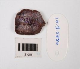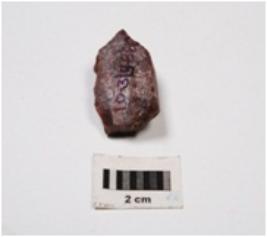 | Description / विवरण | A chrt scraper with one working edge on side and three flake scars on surface. |