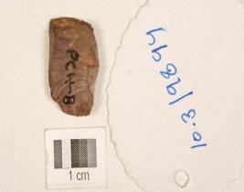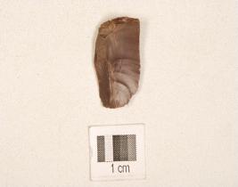 | Description / विवरण | A chert blade, scars on surface and use wear marks on working edges. |