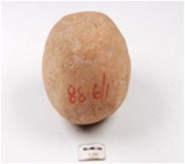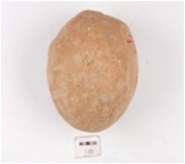 | Description / विवरण | A handmade terracotta ball, globular in shape, finger impressions on surface, uneven surface and circular cross section. |