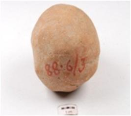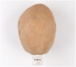 | Description / विवरण | A handmade terracotta ball, globular in shape, finger impressions on surface, uneven surface, clay mixed with sand particles and circular cross section. |