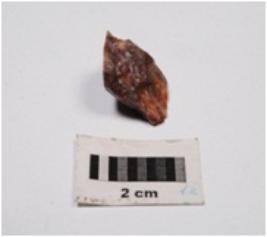 | Description / विवरण | A chert scraper with a blade scars, a striking platform and working edge on side. |