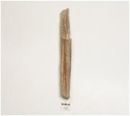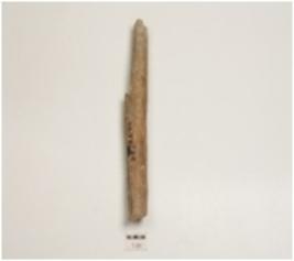 | Description / विवरण | Fragment of bone point, polished surface, both ends broken, cracks visible and a groove in middle. |