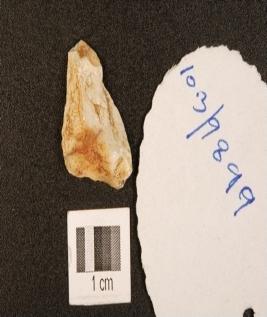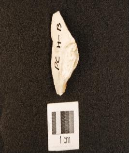 | Description / विवरण | A chert flake, scars and cortex on dorsal side surface. |