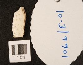 | Description / विवरण | A chert blade, use wear marks on working edges, cortex on surface and bulb absent. |