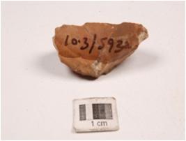 | Description / विवरण | Scraper made on chert with cortex on surface, use wear marks on working edge and triangular in section. |