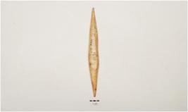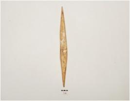 | Description / विवरण | A point made on bone, polished surface, pointed one end, another end is tanged though pointed and rectangular cross section. |