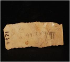 | Description / विवरण | Chert blade with two ridges on dorsal trepezoidal in section and use-wear marks along the cutting edges. |