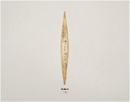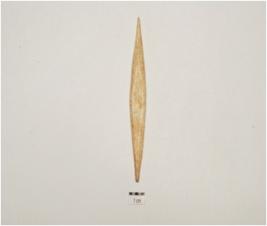 | Description / विवरण | A point made on bone, polished surface, pointed one end, another end is tanged though pointed and rectangular cross section. |