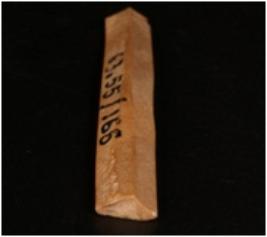 | Description / विवरण | Chert blade, one prominent ridge on dorsal side and triangular section. |