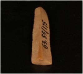 | Description / विवरण | Chert blade, ridge on dorsal side sharp edges, triangular section and use-wear marks along the cutting edges. |
