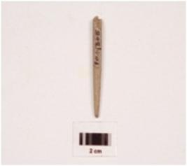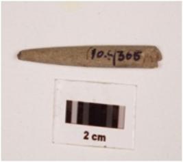 | Description / विवरण | Stone point with circular cross section, smooth and polished surface, one end broken. |