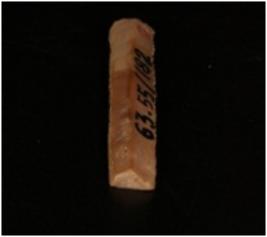 | Description / विवरण | Chert blade. Mid-ridge on dorsal side sharp edges, triangular in section and use-wear marks along the cutting edges. |