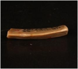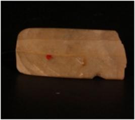 | Description / विवरण | Chert blade, double ridge on dorsal diffused bulb trapezoidal section and use-wear marks along the cutting edges. |