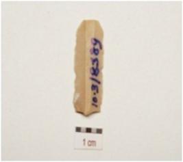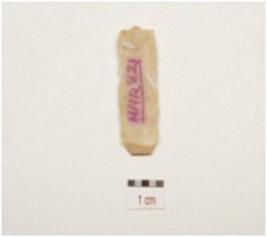 | Description / विवरण | A blade made on chert, prepared platfrom, three blade scars on dorsal side, broken on distal end and use wear marks along cutting edges. |