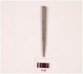 | Description / विवरण | Fragment of pointed arrow head stone, circular in section, greyish colour, smooth surface. |
