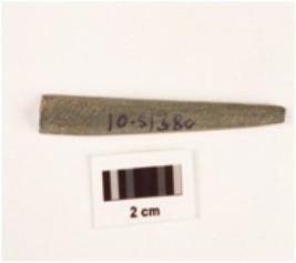 | Description / विवरण | Stone point, both ends broken, vertically broken hence seni circular section, polished surface. |