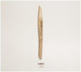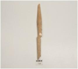 | Description / विवरण | Fragment of bone point, both ends pointed and partly damaged, monded circular cross-section and slightly polished. |