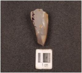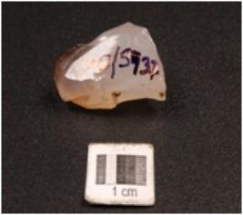 | Description / विवरण | A core made on chalcedony seven blade scars on surface, prepared platform and white in colour. |