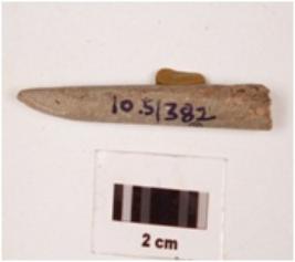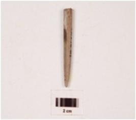 | Description / विवरण | A stone point with circular cross section, polished surface and broken from the thick end. |