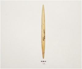 | Description / विवरण | A point made on ivory, polished surface, pointed one end, other end is tanged though pointed and plano convex cross section. |
