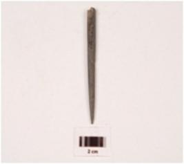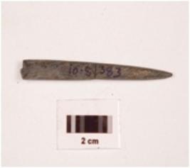 | Description / विवरण | A stone point with rectangular cross section, polished surface and broken from the thick end. |
