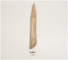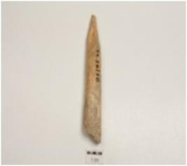 | Description / विवरण | Fragment of bone point, pointed one end slightly damaged, other end broken, polished surface and rectangular cross-section. |