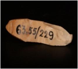 | Description / विवरण | Blade on core made on chert, blade scars on surface and prepared platform. |