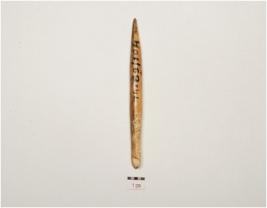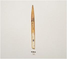 | Description / विवरण | A point made on ivory, polished surface, pointed one end, slightly broken other end and circular cross section. |