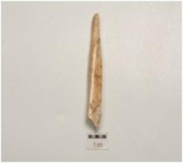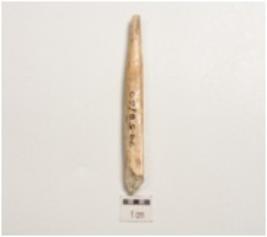 | Description / विवरण | Fragment of bone point, polished surface, cream in colour, pointed at one end, partly damaged other end broken and plano-convex cross-section. |