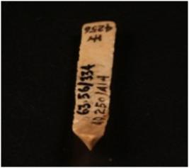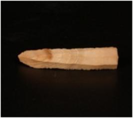 | Description / विवरण | Chert blade double ridge on the dorsal, bulb is absent proximal end is broken use-wear marks along the cutting edges and trapezoidal section. |